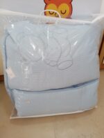 Composto por edredão, almofada e proteção de grades.